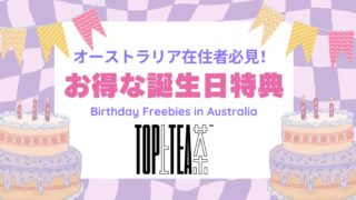 こんにちは!メルボルン大学に通う大学3年生のもぐです🐿️オーストラリアでは誕生日になると様々なお店でお得な特典がもらえることを知っていますか?しかもその多くは無料のものが多いです。今回は圧倒的人気を誇る「Top Tea」の誕生日特典とそのご...